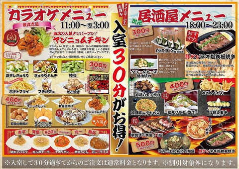 | 営業時間 | 月~木、日、祝日: 11:00~翌2:00 (料理L.O. 翌0:50 ドリンクL.O. 翌1:30) 金、土、祝前日: 11:00~翌3:00 (料理L.O. 翌1:50 ドリンクL.O. 翌2:30) |
